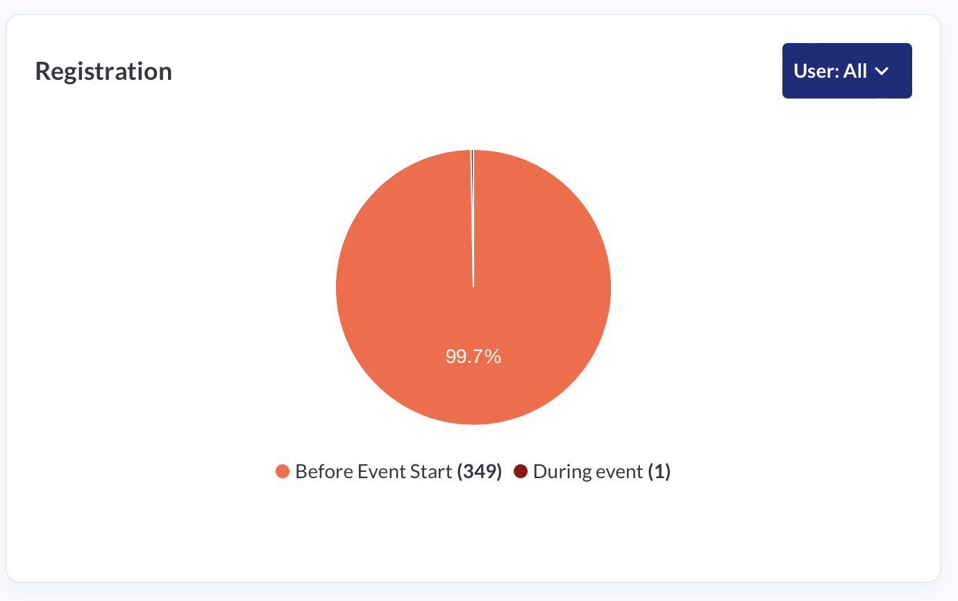 Pie Chart: Displays total event registrations divided into those who checked in at least once and those who did not.