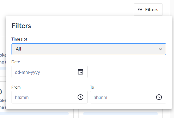 Time slot: All, Available, Booked
