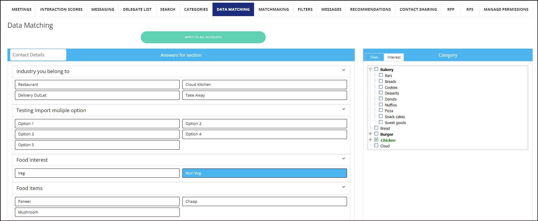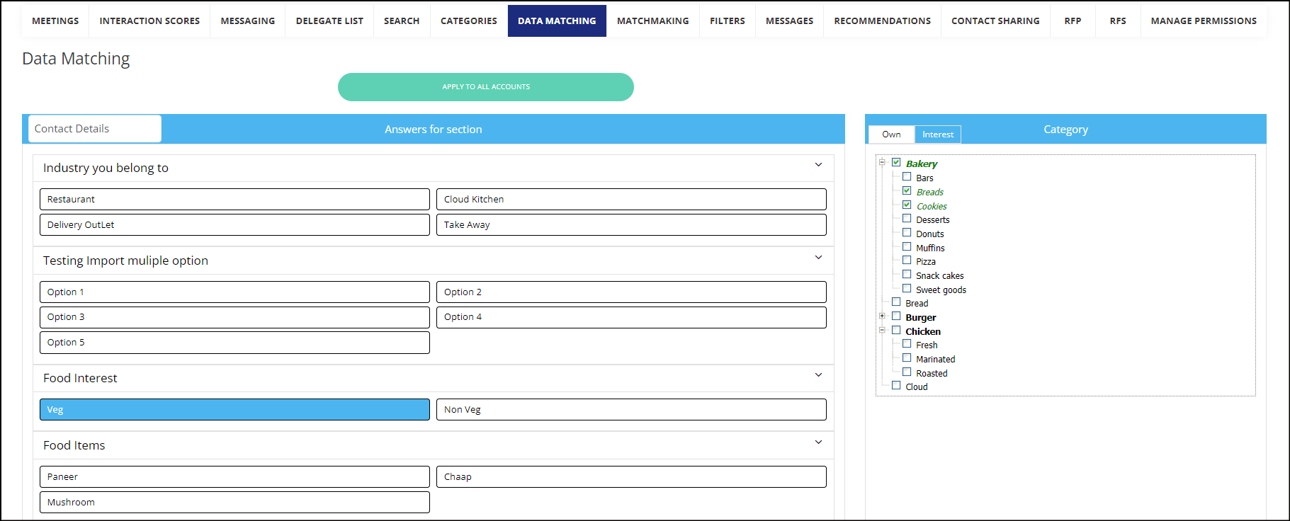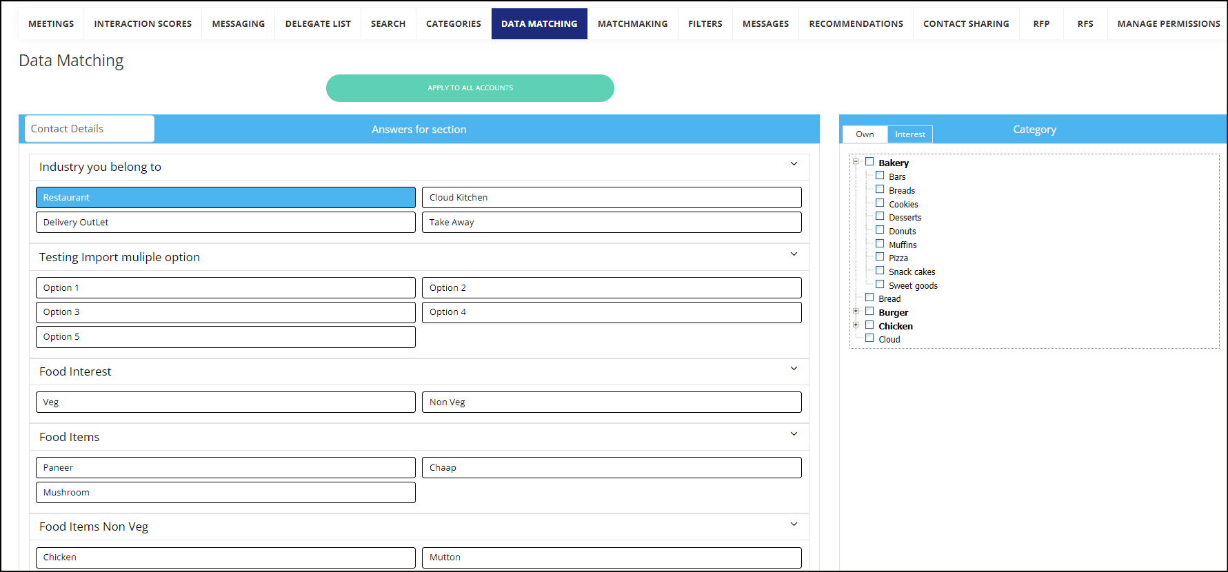 A use case for using Data Matching is when the client does not want to expose all the Interest and Product categories to all participants during registration, based on the responses to the custom questions, the interest and activity categories are automatically assigned.