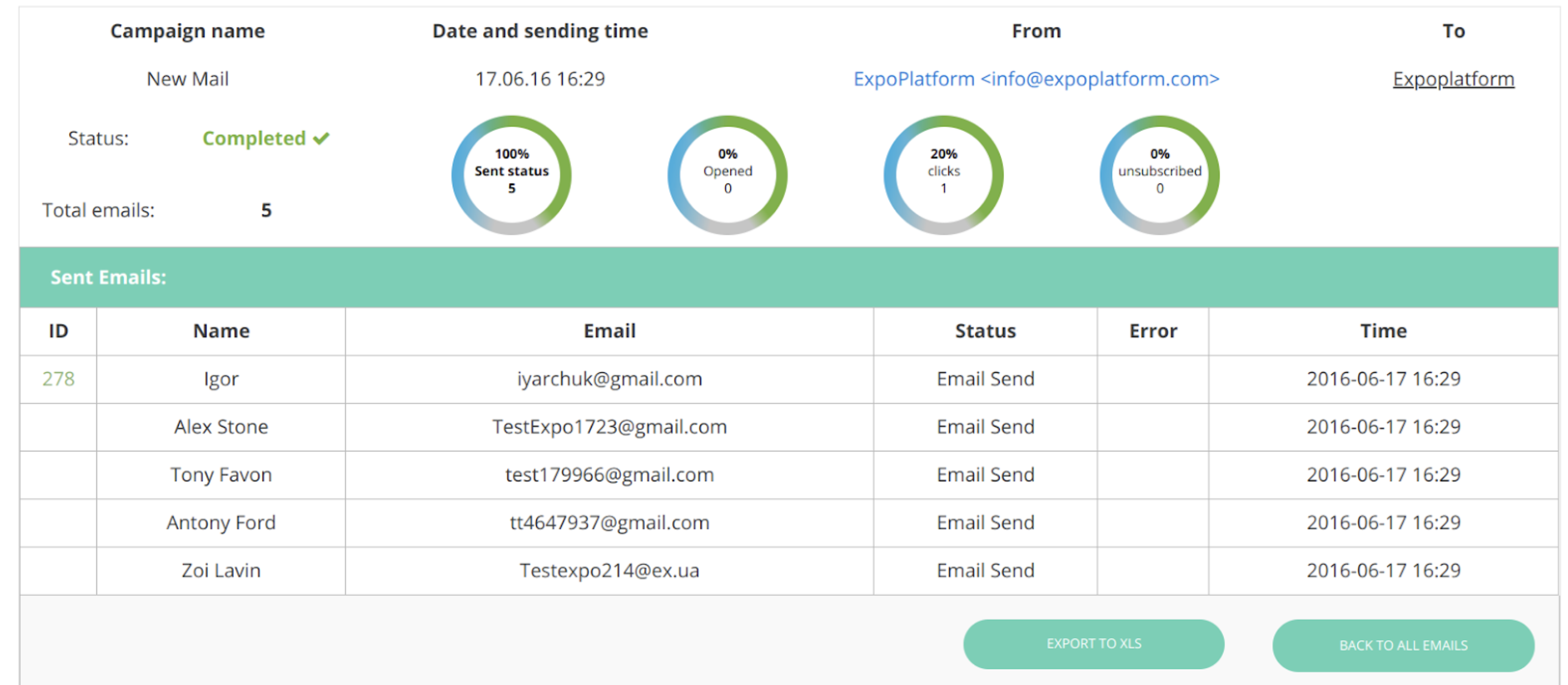 From the initial view, you’re able to look through the emails that have been sent, you can also filter by date or template. When clicking through to a sent email you’ll see the screen below. This section shows the statistics of the email that was selected. You can also export this to an XLS.