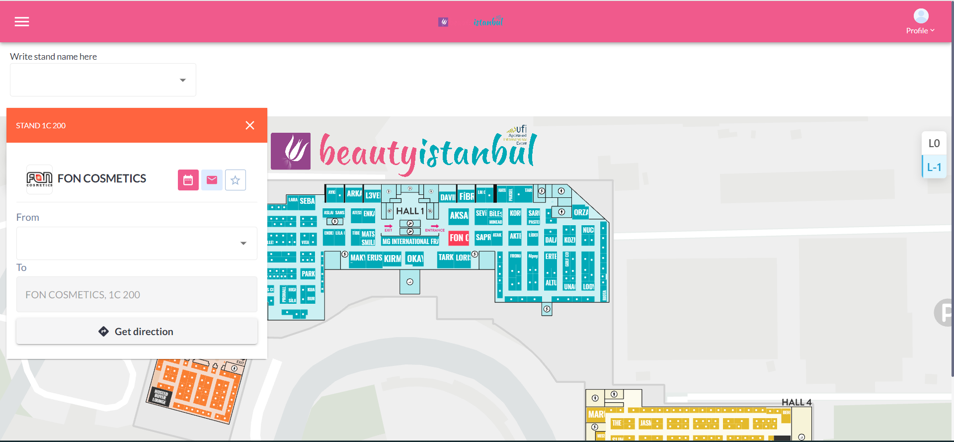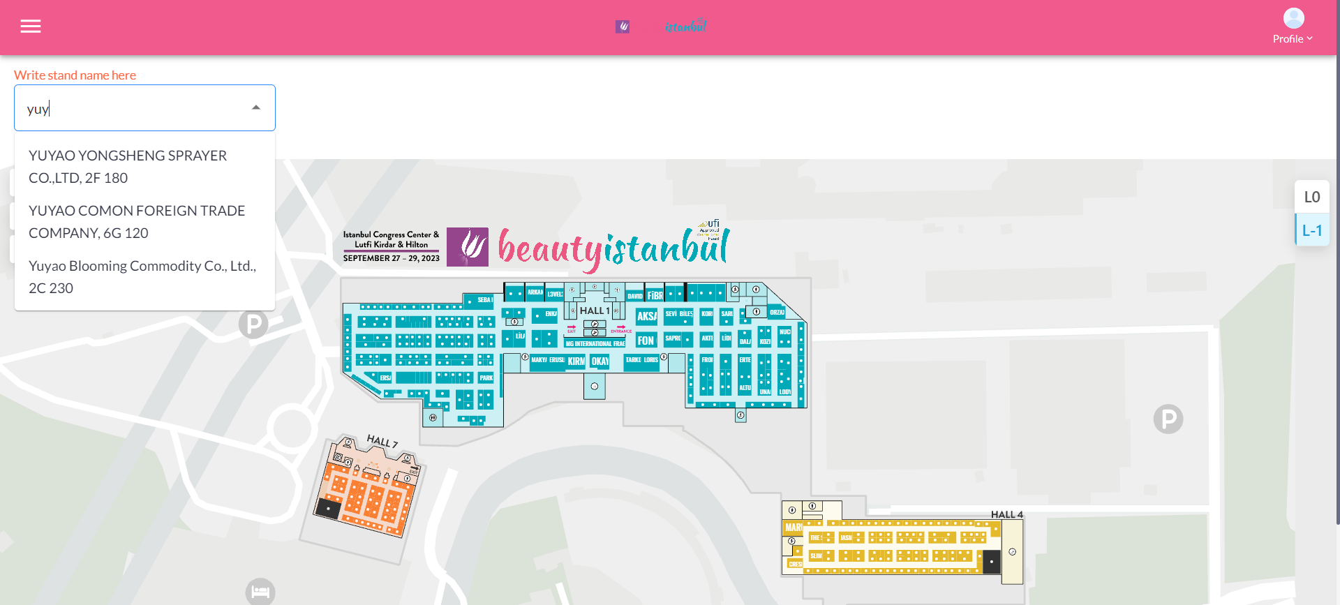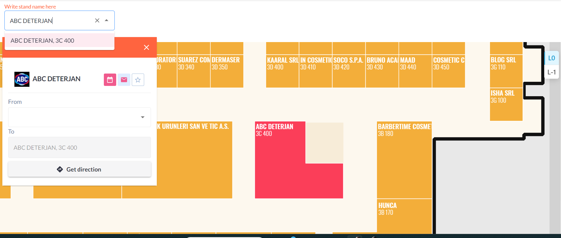 Stands associated with exhibitors can be searched.