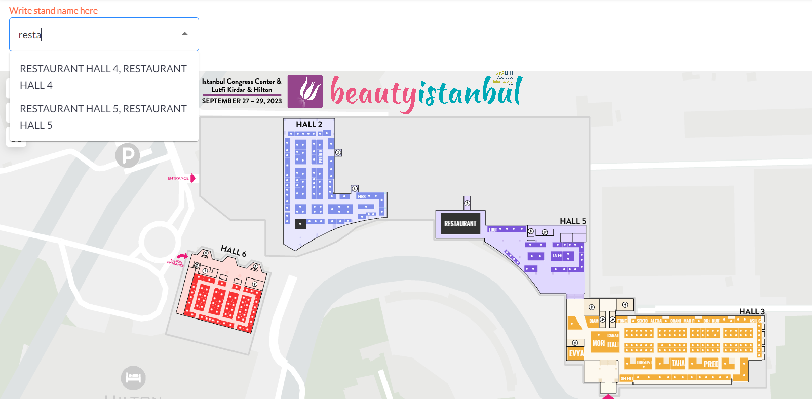 To ensure proper functionality, make sure that stands and halls are uniquely created and correctly assigned to exhibitors in the EP floorplan.