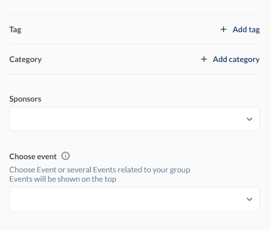 You can create your own tag or chose from existing tags. Please note that tags have to be relevant to the topic and that category refers to group category, completely unrelated to visitor or exhibitor registration categories.Sponsors