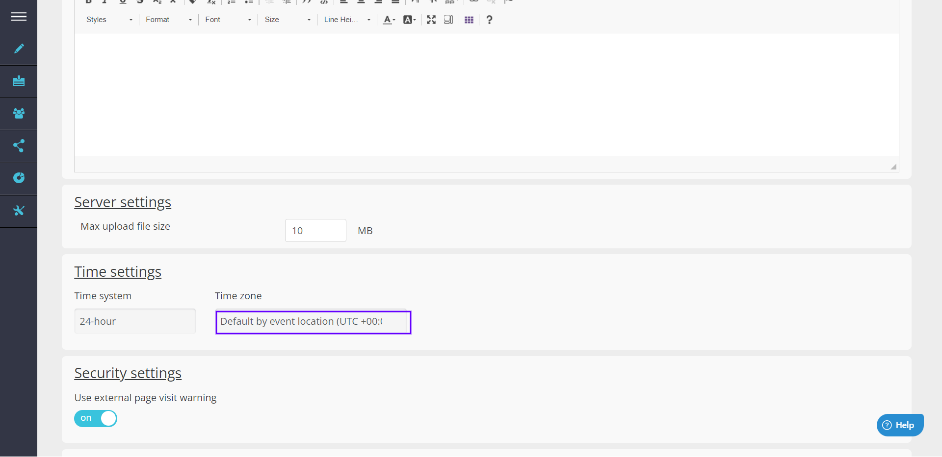 The time zone defines the date and time of the sending of your emails, the time of your event, the time of the sessions of your program as well as the time of the Push Notifications sending.