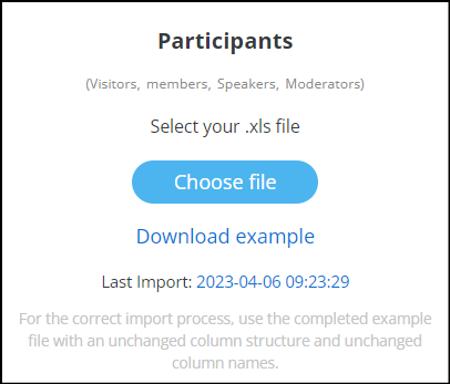 Similarly, organizers can import exhibitors' team members and moderators into the platform.