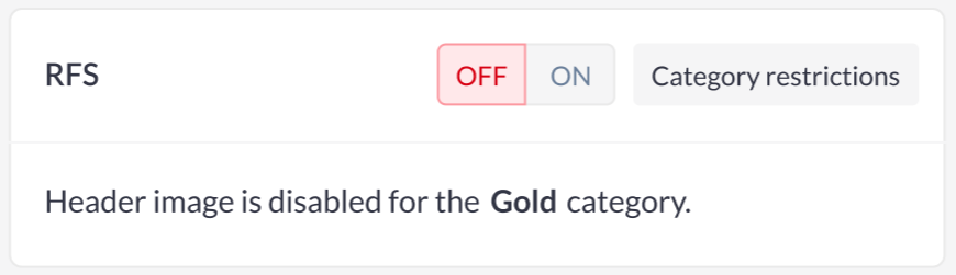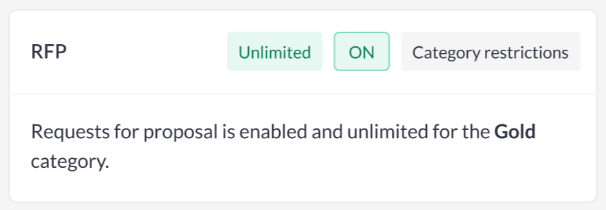 ![]() | RFP setting is handled from Category, so restriction resource is always Category and can’t be changed. When “RFP“ in category is turned ON, “RFP“ on exhibitor settings page will have in switch only ON. Same for Buyers list |