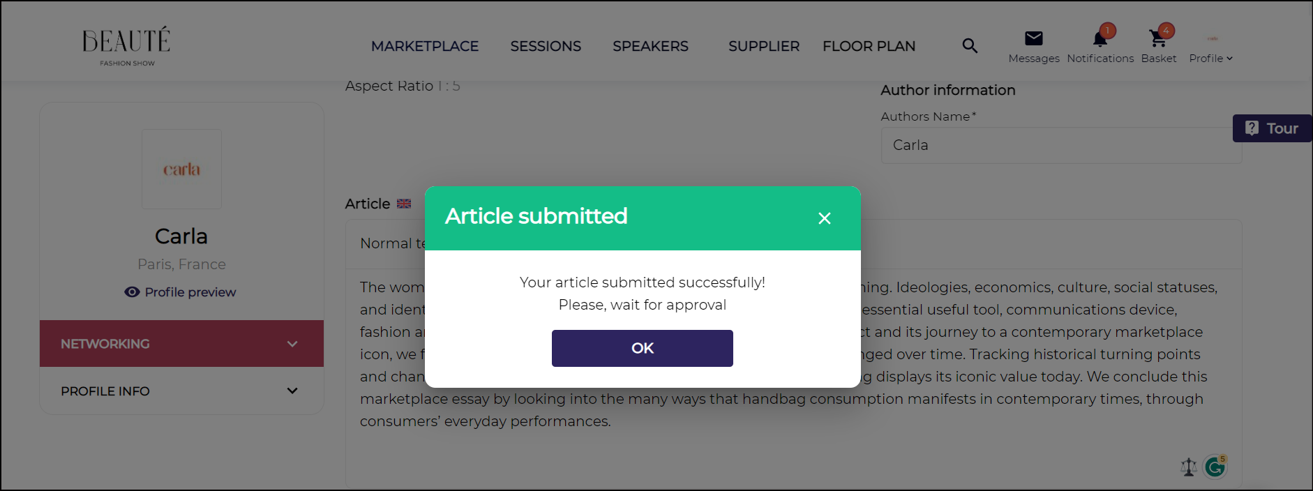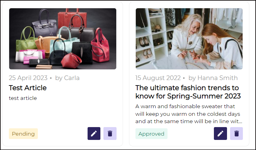 Article would be added in Pending Approval state once approve by the organizer will get published on New Page
