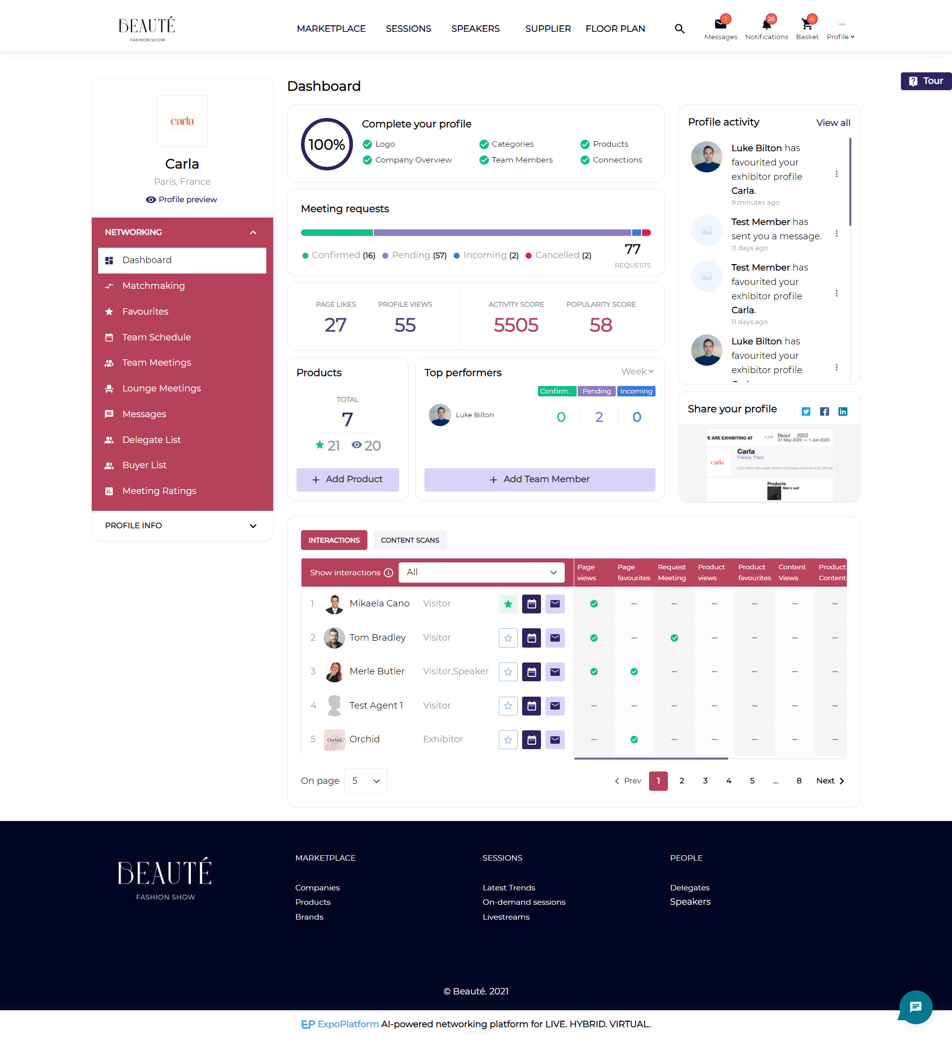 Interactions: At the bottom of the dashboard is the interactions section which provides all the real-time information related to a participant's activity on your profile.