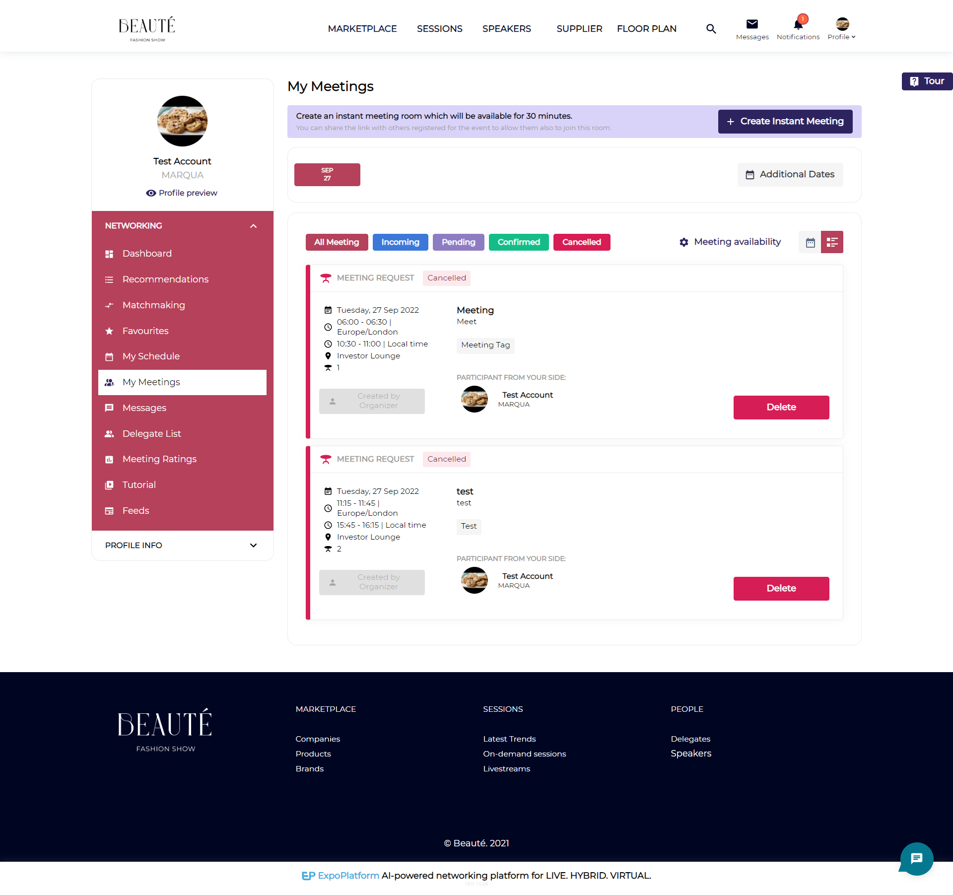My Meetings: This tab shows the list of all the incoming, pending, confirmed & cancelled meetings.